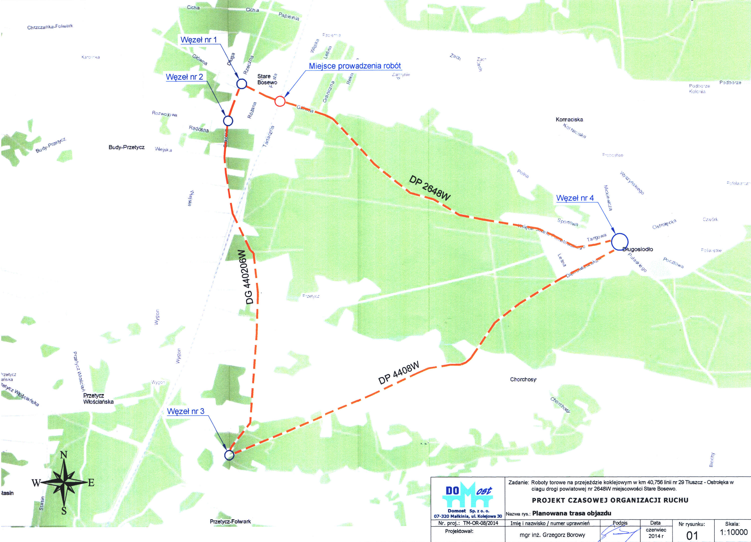 W związku z remontem przejazdu kolejowego na przecięciu drogi powiatowej Nr 2648W i linii kolejowej Nr 29 Tłuszcz - Ostrołęka (ul. Główna w miejscowości Stare Bosewo) przewiduje się zamknięcie dla ruchu drogi w obrębie miejsca robót.